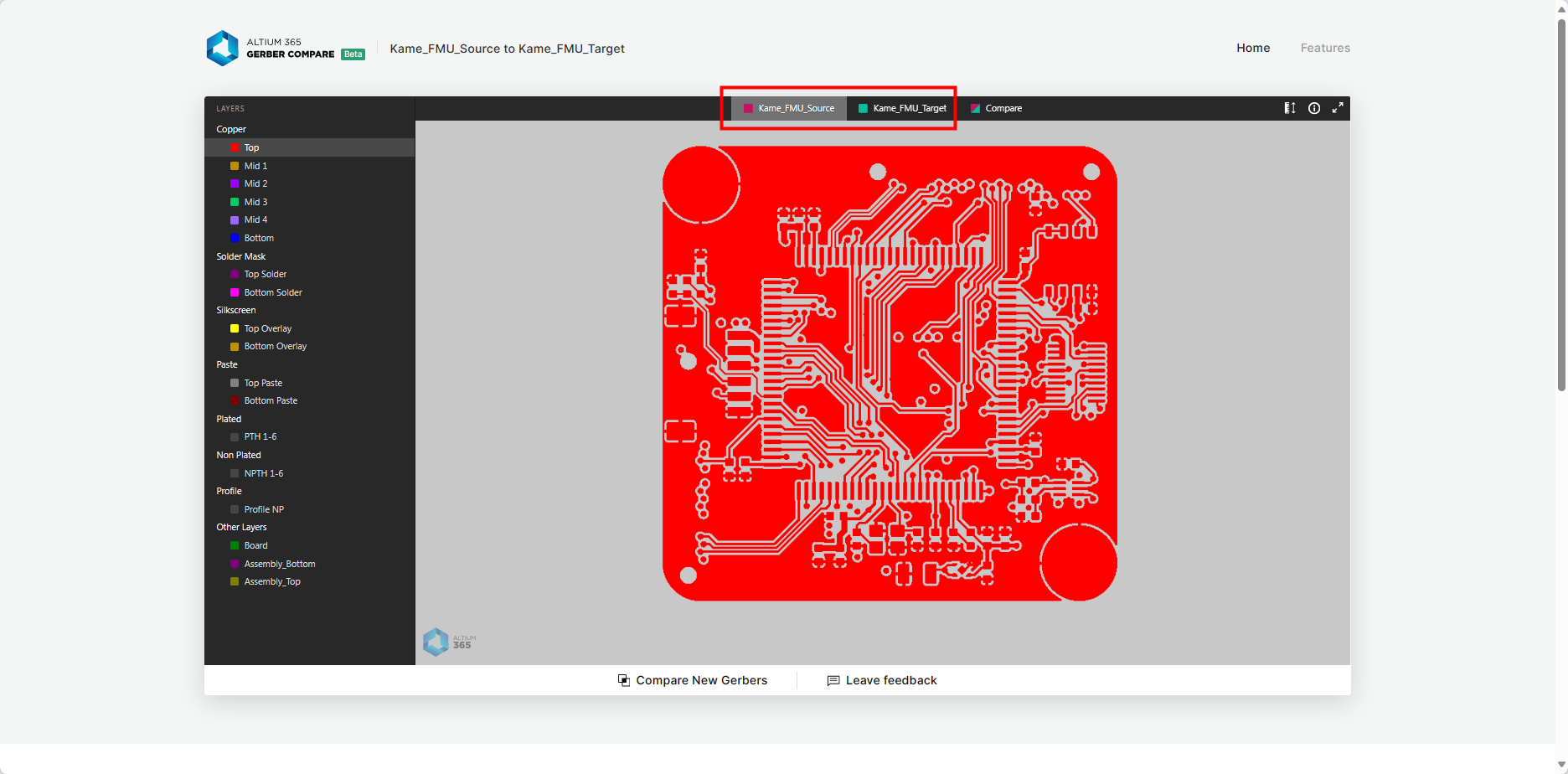 打開瀏覽器,訪問 Altium 365 Gerber Compare在線工具。該工具提供了強大的 Gerber 文件對比功能,支持多種設計工具生成的 Gerber 文件,包括 Altium Designer、KiCad、Eagle 等。