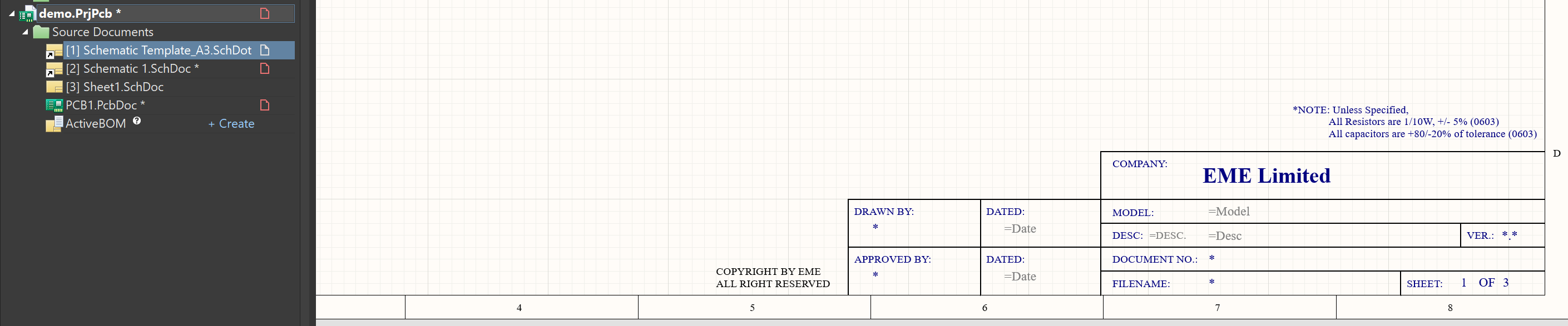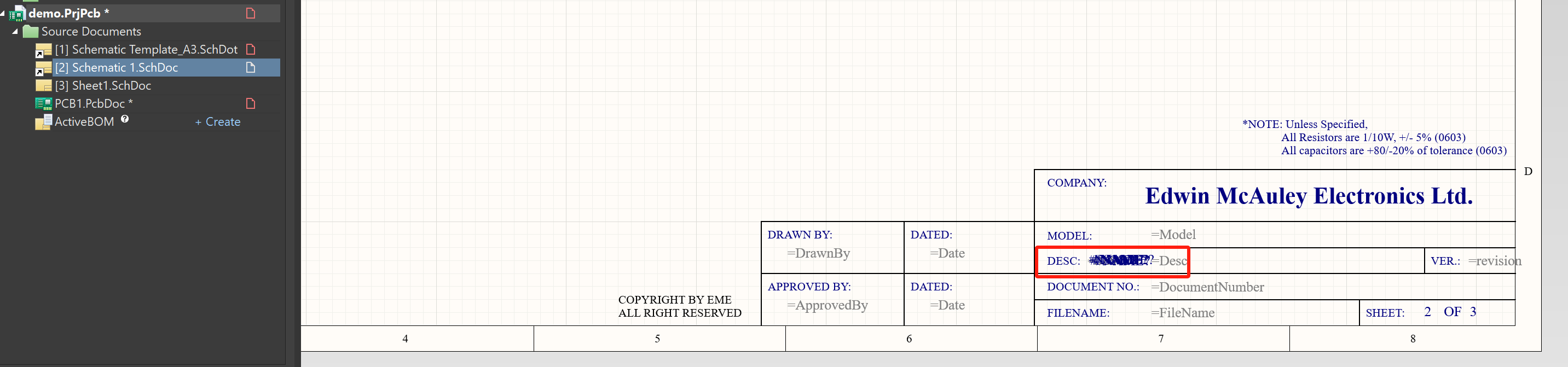 更改TEXT文本,再重新將原理圖模板文件導入原理圖中(*.SchDoc)