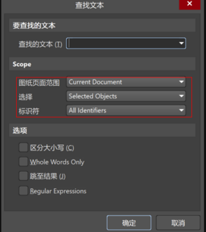3. 另外在“圖紙頁面范圍”下拉框,可以選擇查找圖紙的范圍,如圖5;在“標識符”中可以選擇標識符類型,如圖6。