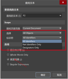 "All Identifiers":同時檢索元件位號、網絡標號及自由文本