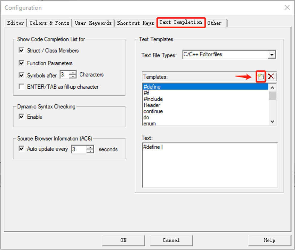 2.在“Text Completion”標簽下,選擇新建圖標。。