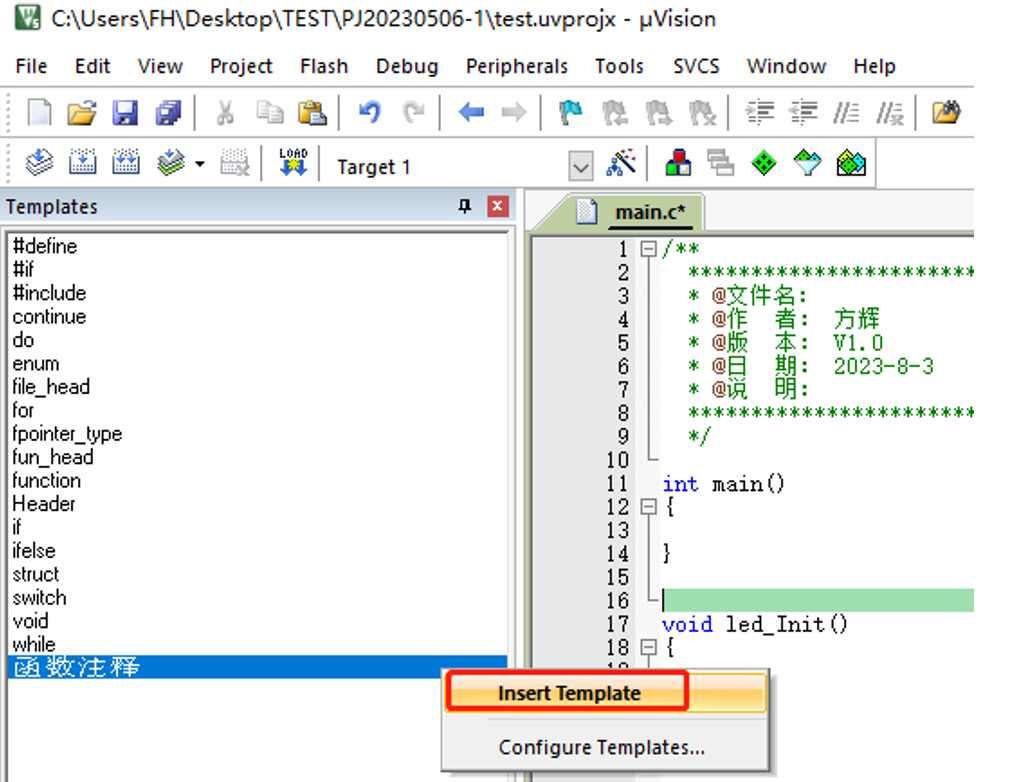 解決MDK中快速添加函數(shù)注釋