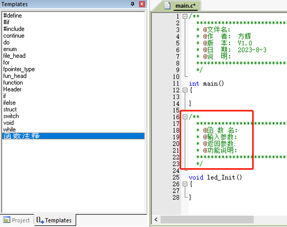 在書寫程序的時候需要對函數(shù)進行一些注釋,每次拷貝都需要來回切換界面,使用模板就可以方便地添加函數(shù)注釋。