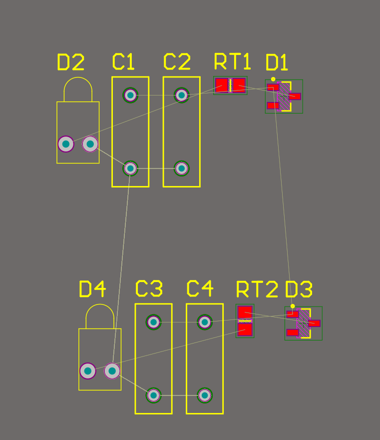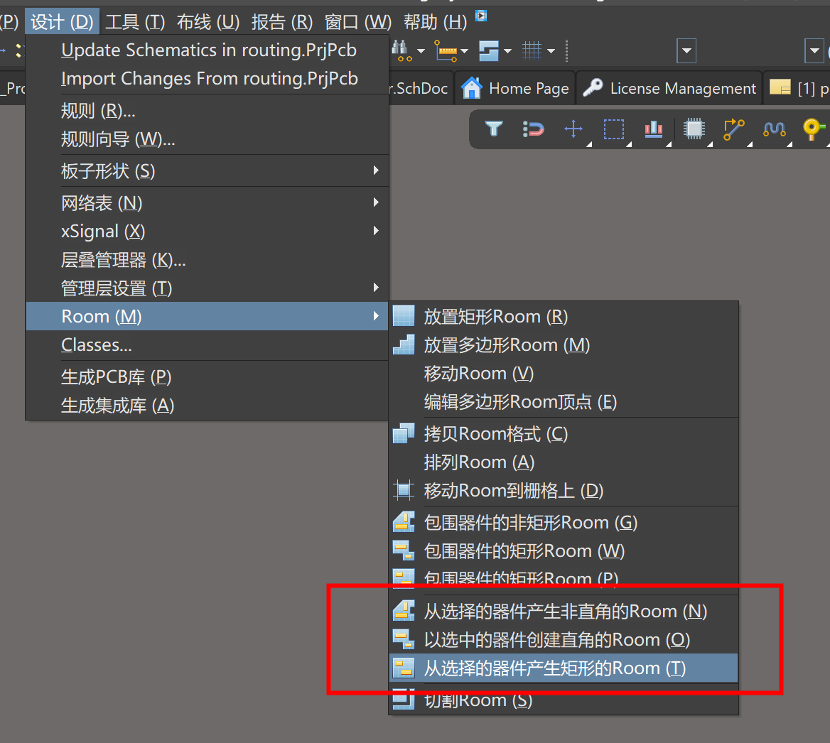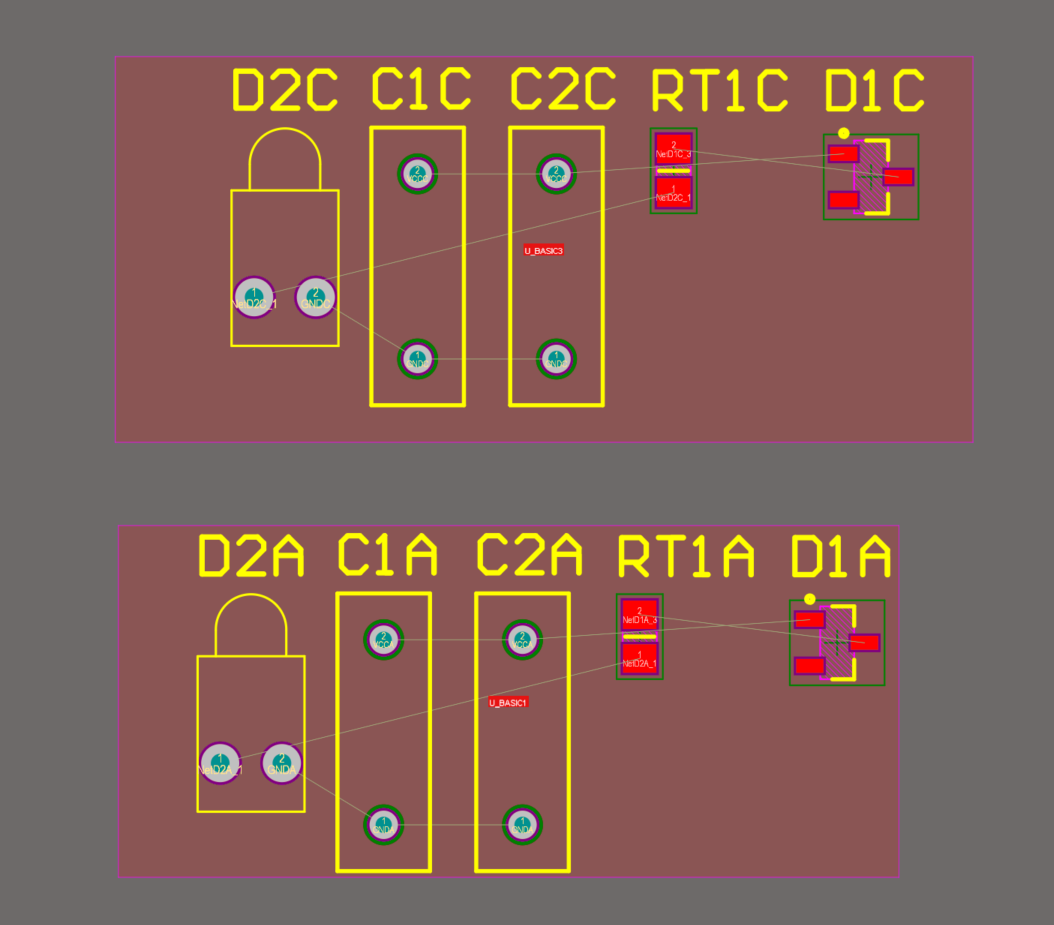 6)對一組元器件進行布局布線,然后使用拷貝Room格式功能,就能將布局布線復制給另一個組。