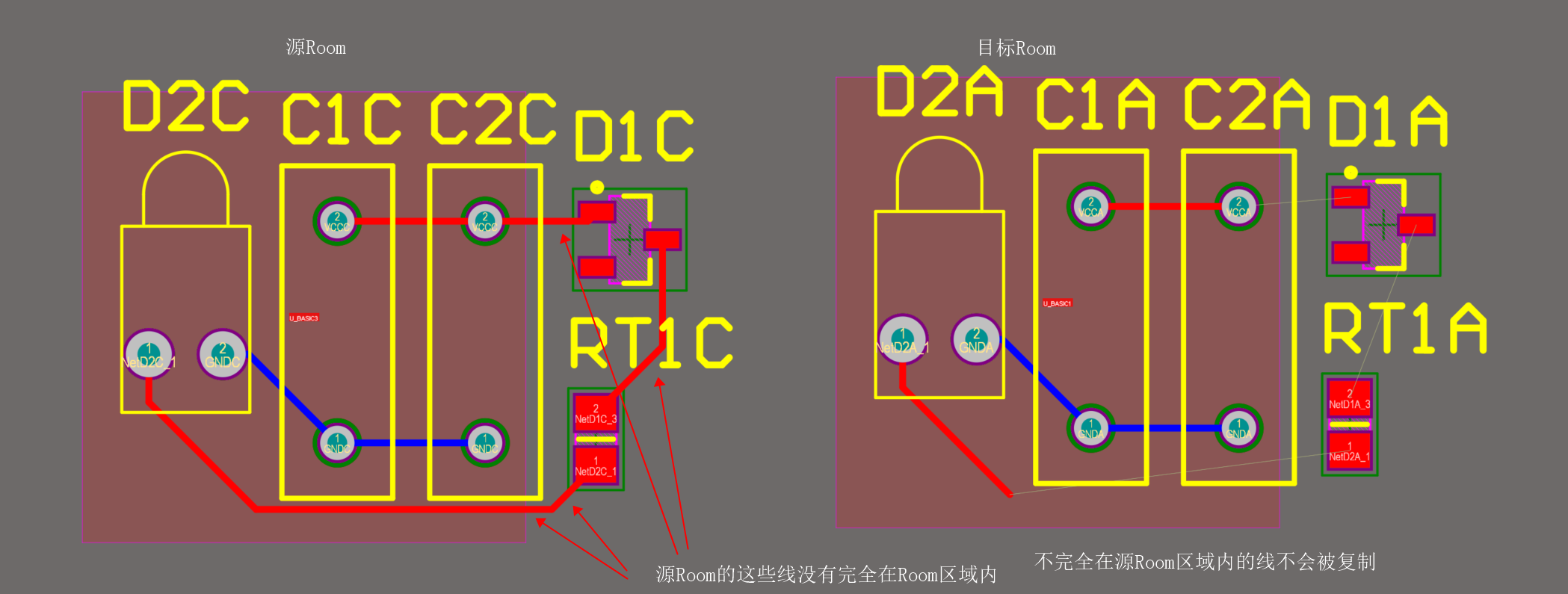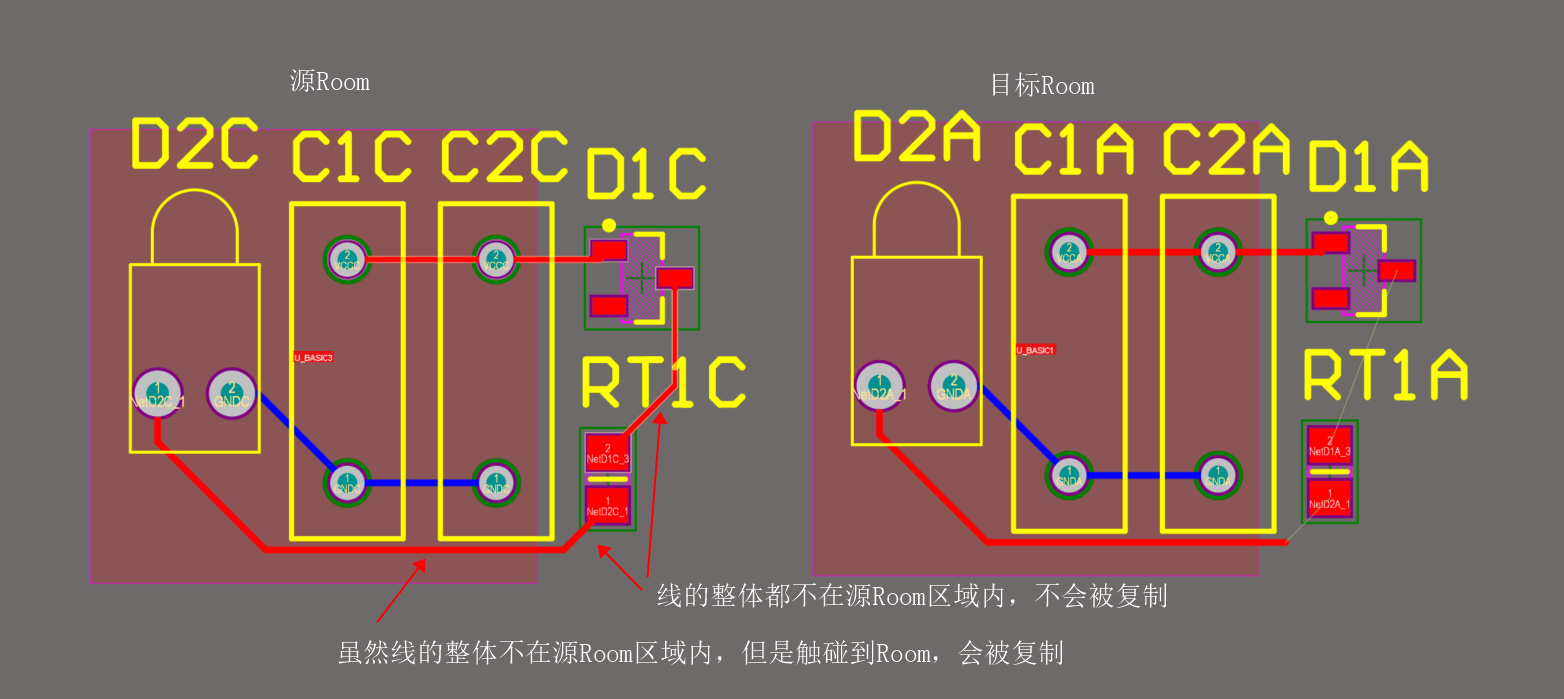這種情況最為復雜,單純的拷貝Room格式和PCB Layout Repication都無法滿足使用條件,需要人為進行設置。