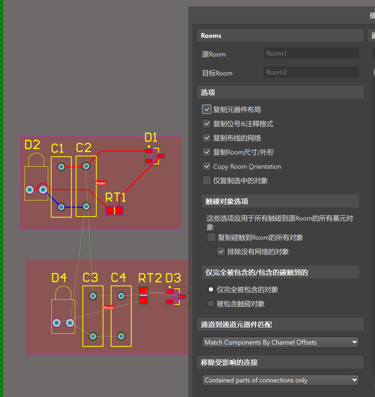 復制布線的網絡:勾選此項可將源Room的布線復制到指定的Room