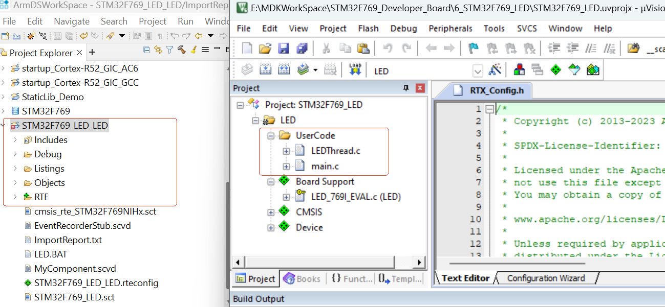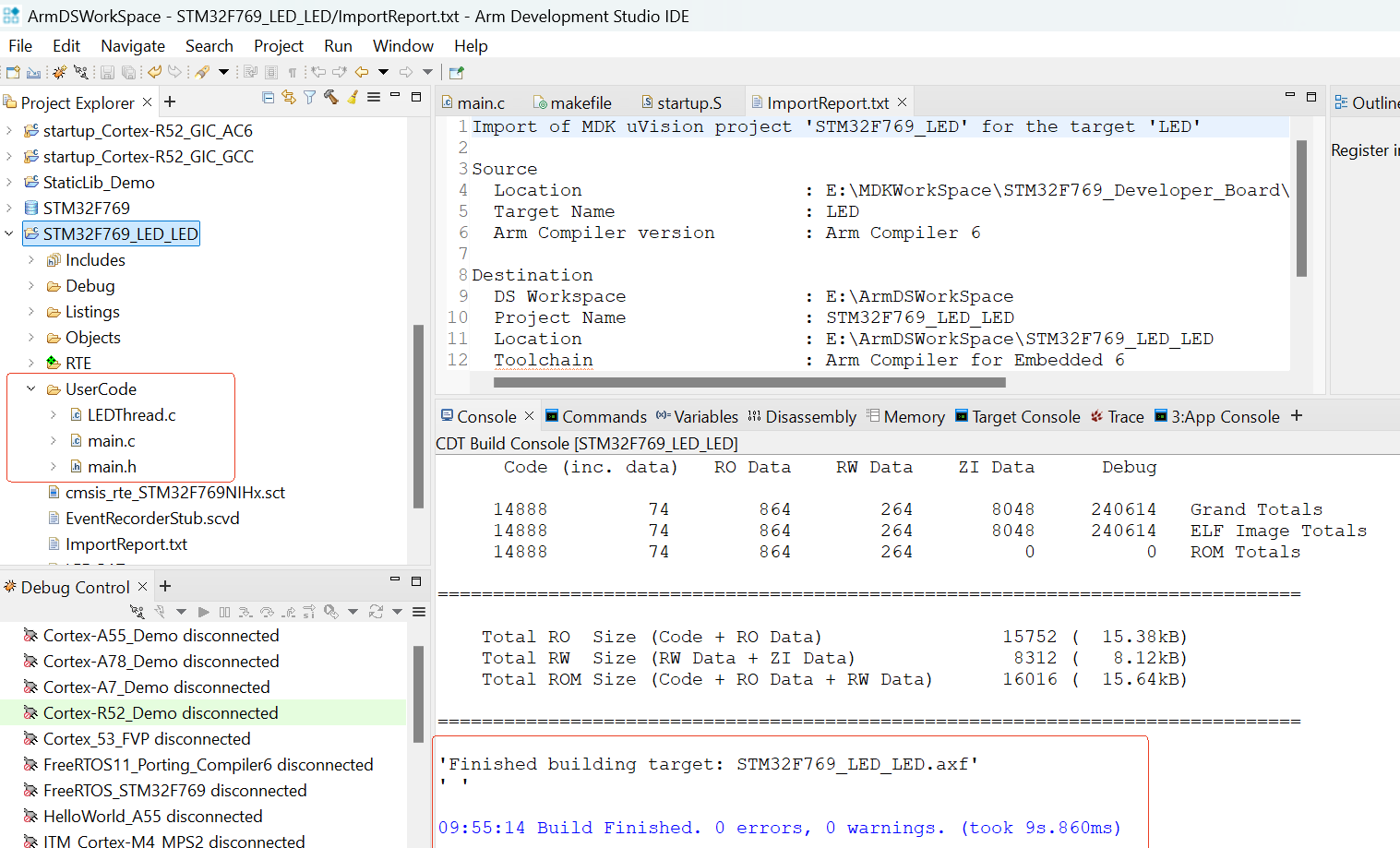 3)、把UserCode目錄移到Keil MDK工程目錄下,用ArmDS重新導入Keil MDK,再編譯,問題解決,如圖4-3所示: