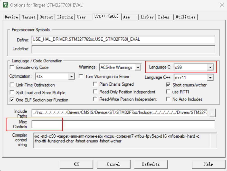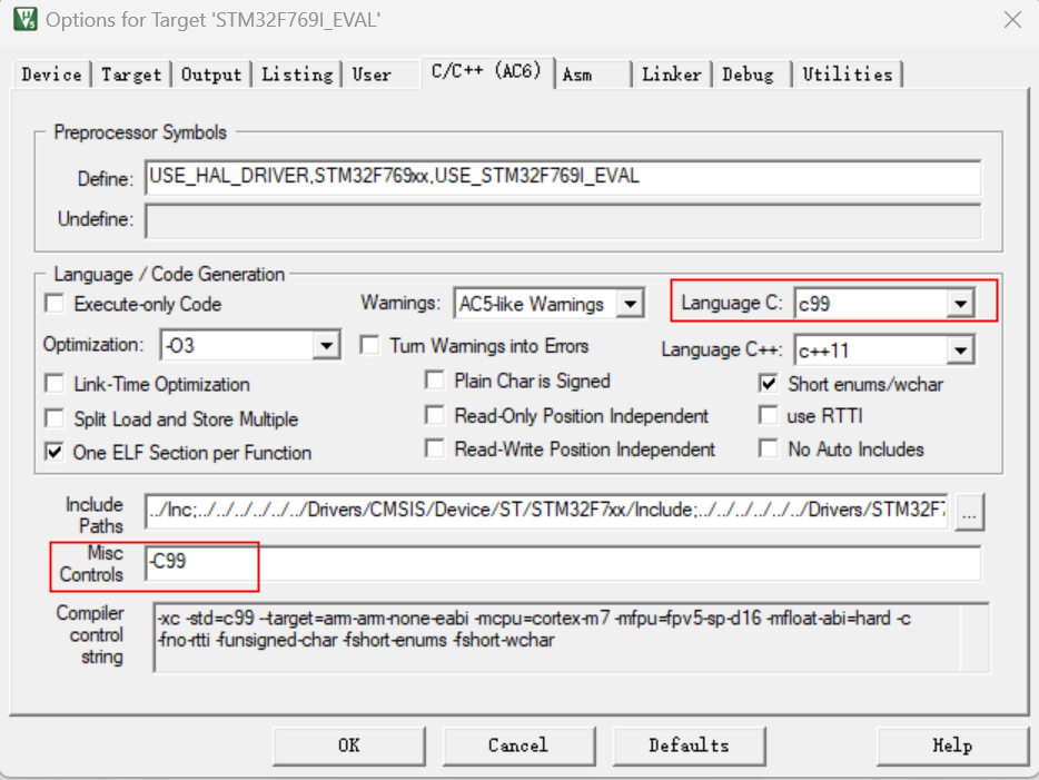 3)、方法2:在“Misc Controls”中,去掉“-C99”,如圖4-3所示: