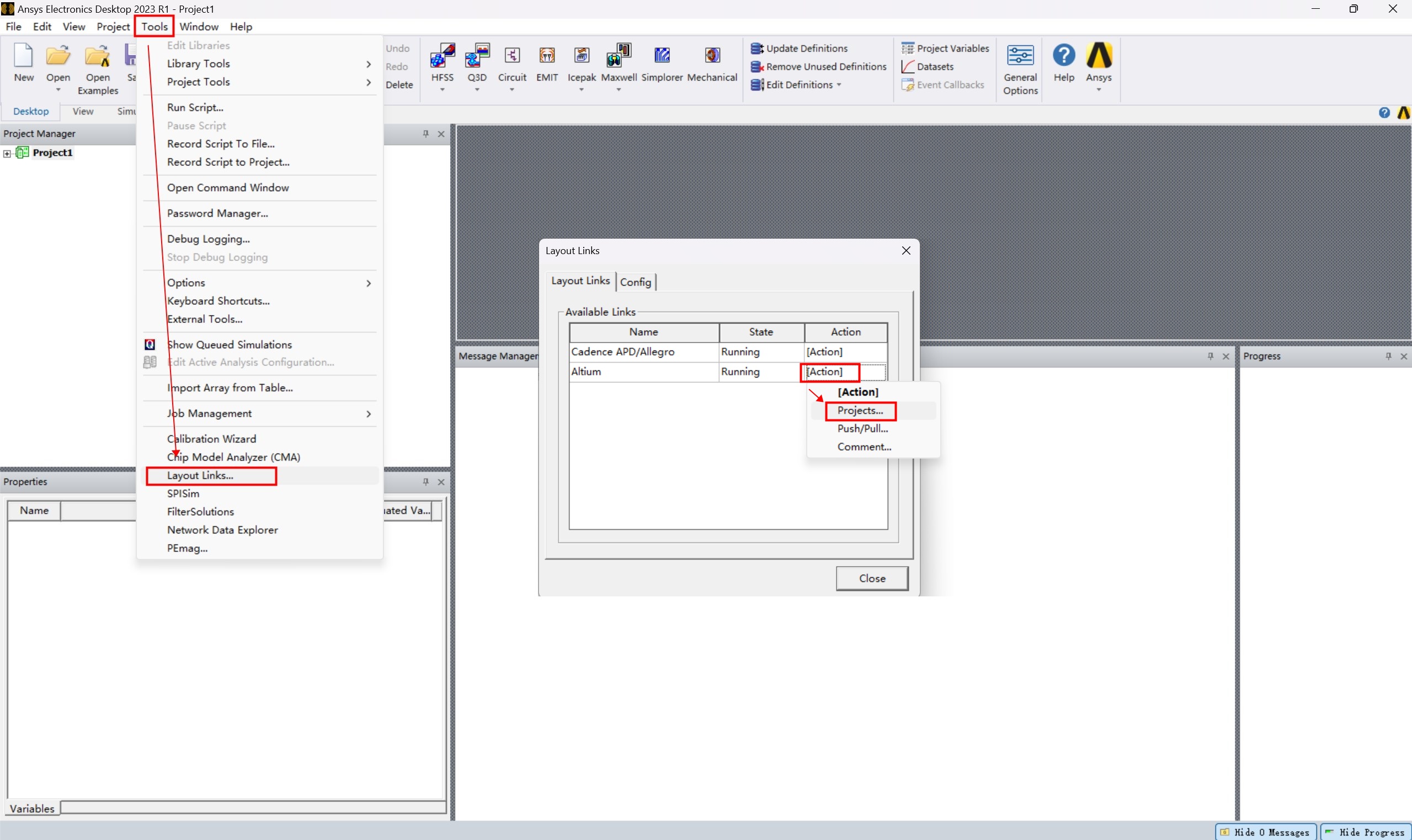 首先,需在 Ansys Electronics Desktop (AEDT) 版本 2023 R1 與 2023 R2 環境中集成 Altium Link 插件。關于該插件的獲取與安裝指南,請直接與我們的技術支持團隊聯絡以獲取詳細流程。