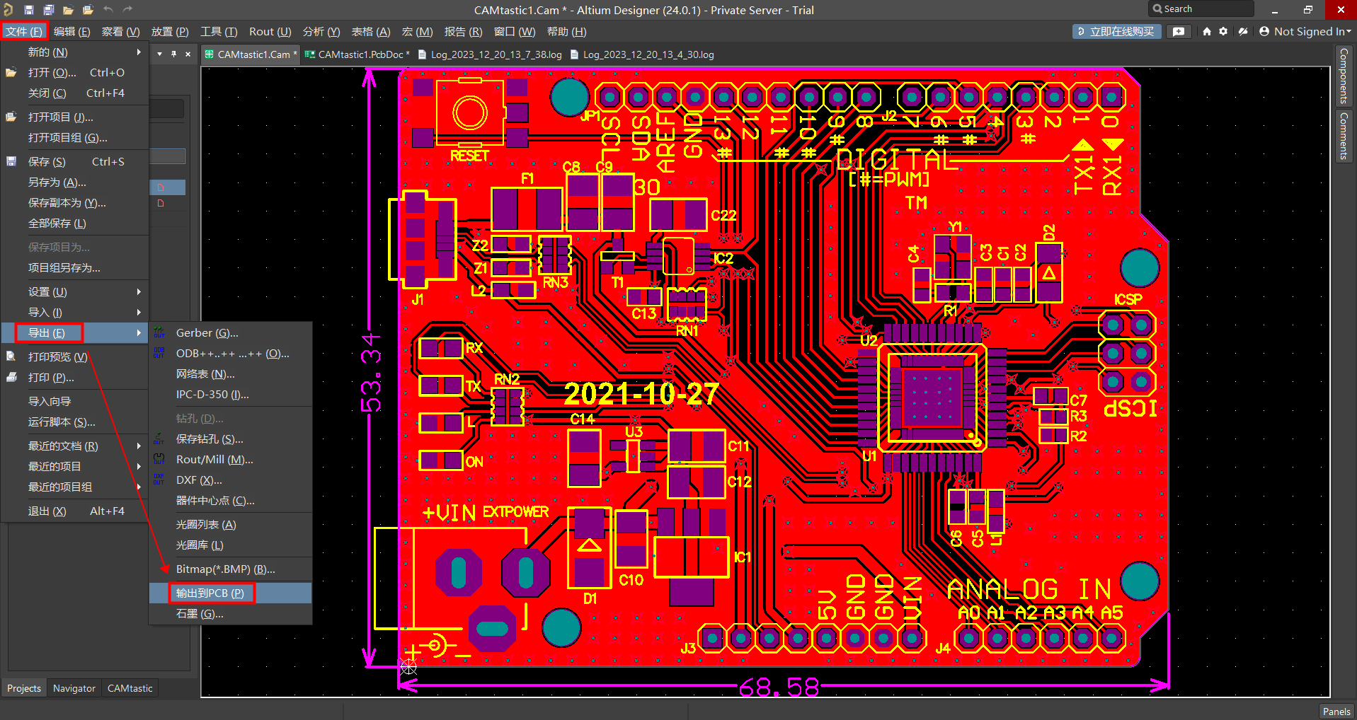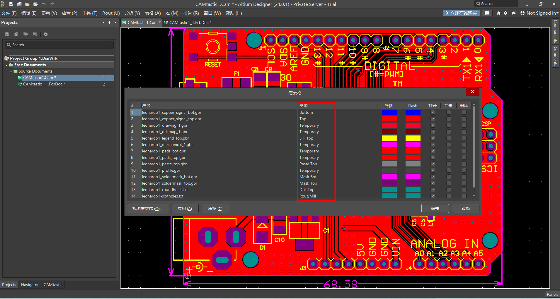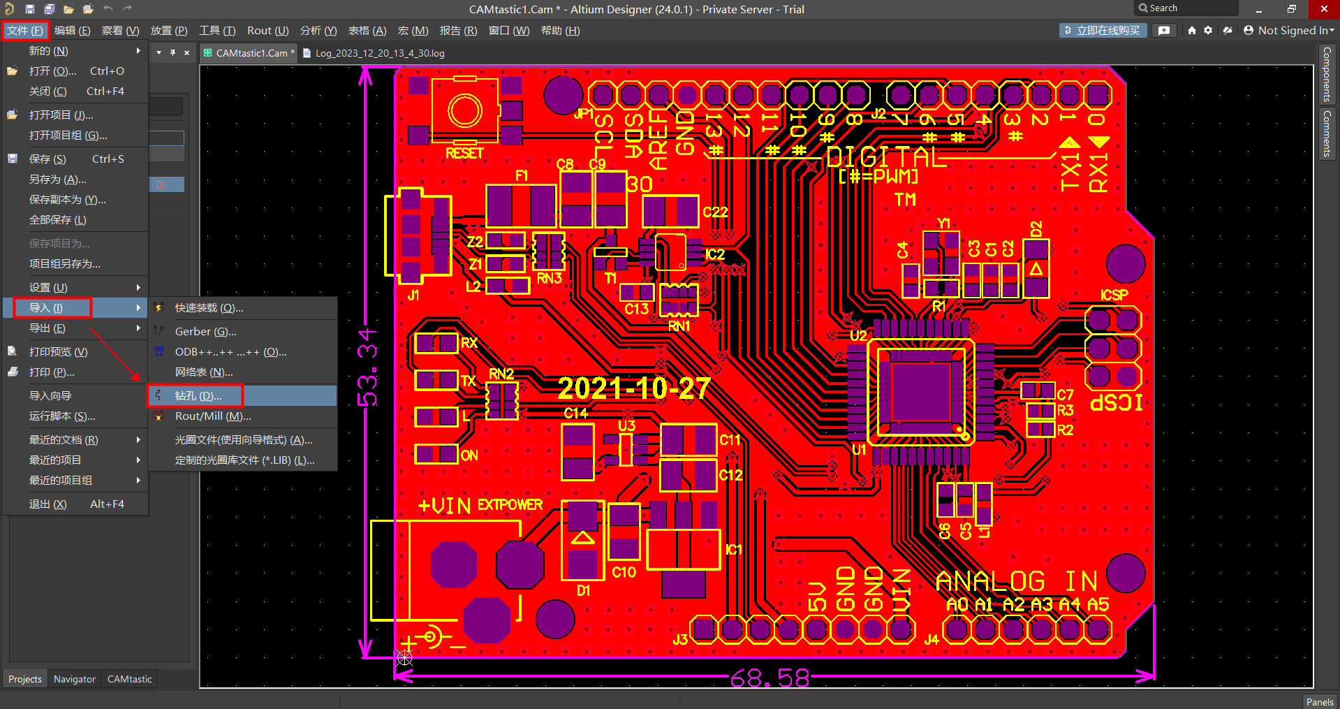 Altium Designer 自帶了一個類似 CAM350 的工具,叫 Camtastic。從 Gerber 到 PCB 的逆向工程,就由 Camtastic 工具來完成。