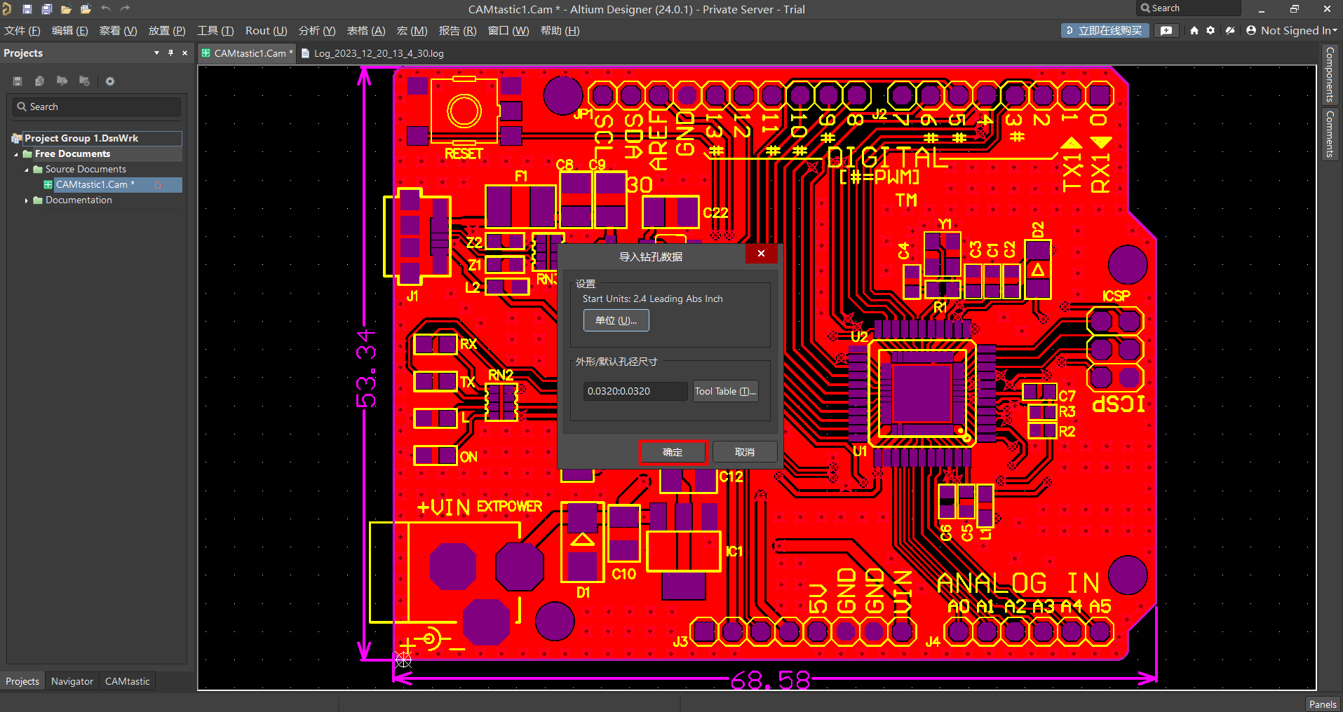彈出【輸入 Gerber-選項】對話框,點擊【確定】