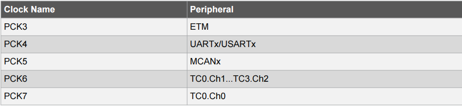 首先是對(duì)于電源管理控制器(PMC)進(jìn)行寫保護(hù)失能,使得可以對(duì)PMC對(duì)應(yīng)的寄存器進(jìn)行操作。據(jù)數(shù)據(jù)手冊(cè)查詢,PCK3時(shí)鐘對(duì)應(yīng)的是ETM外部設(shè)備,所以要設(shè)置ETM的主時(shí)鐘,使能PCK3時(shí)鐘。