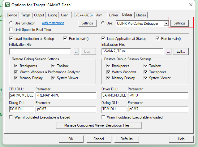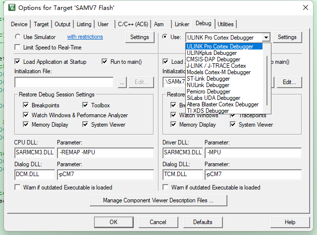 仿真器需要選擇支持ETM功能的,而ULINK pro仿真器支持ETM功能,所以仿真器選項(xiàng)可以選擇”ULINK Pro Cortex Debugger”。