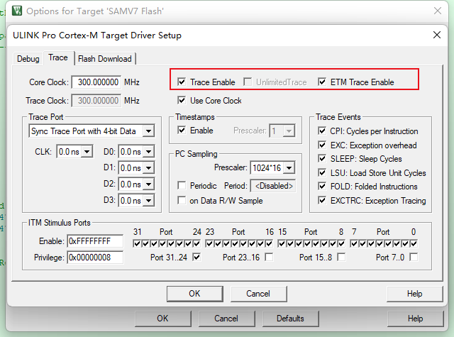 (4)然后,勾選”Trace Enable”和”ETM Trace Enable”,讓Trace和ETM功能使能。