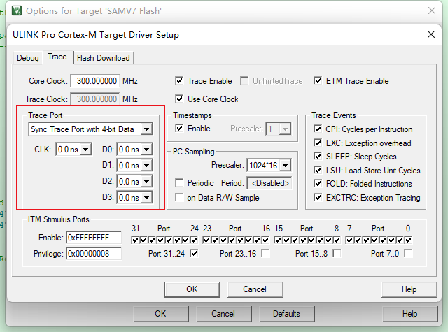 CLK為引腳TRACECLK設(shè)置以ns為單位的信號(hào)延遲。通常,無(wú)需更改,0.0 ns的值就足夠了。