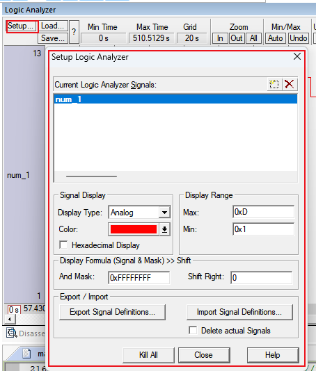 f) Kill All:清除Logic Analyzer中的全部信號。