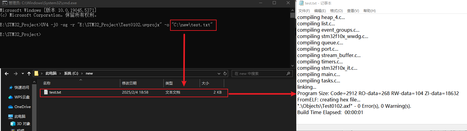 UV4 -r "E:18、文檔預研新建文件夾STM32_ProjectTest0102.uvprojx" -o "C:newtest.txt"