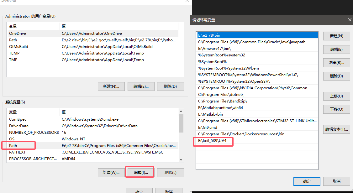 (1)、Keil MDK 的命令行工具通過 UV4.exe 提供,支持多種命令和選項,但是要想在CMD終端窗口中運行Keil的命令行語句,首先需要我們為UV4.exe這個可執行程序提前設置好環境變量,否則我們將無法在任意目錄下使用Keil的命令行語句(不添加環境變量,就只可以在keil安裝目錄中的UV4文件夾下使用這些命令行語句),設置并添加環境變量的方法如圖2所示: