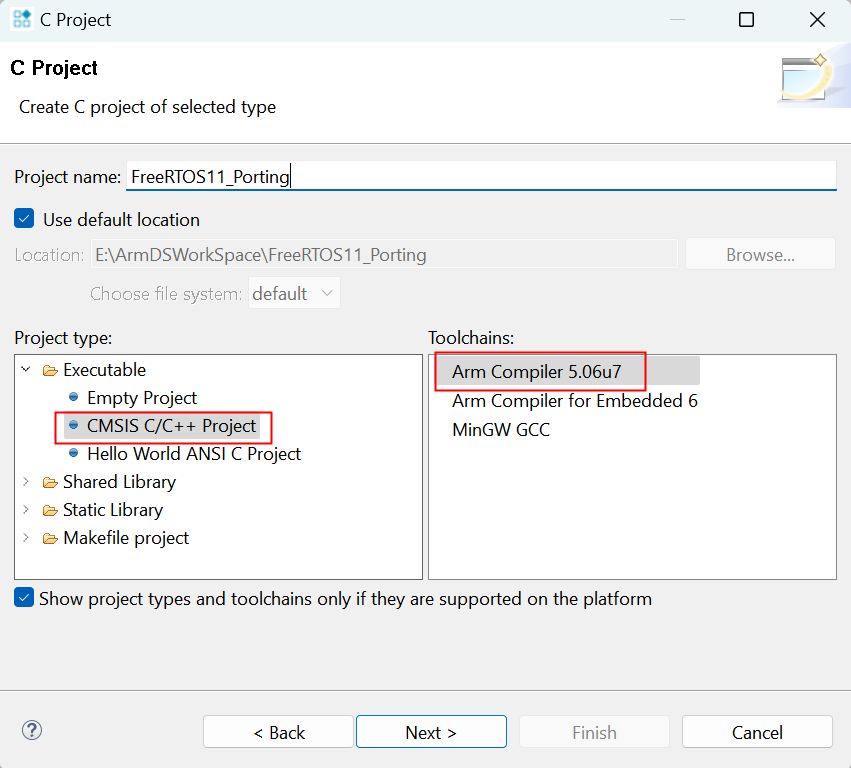 1. 創(chuàng)建一個名稱為“FreeRTOS11_Porting”的項目,配置如圖3-1所示: