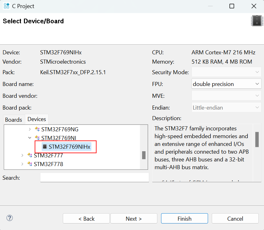 3、選擇 "STM32F769NIHx" 作為目標器件。