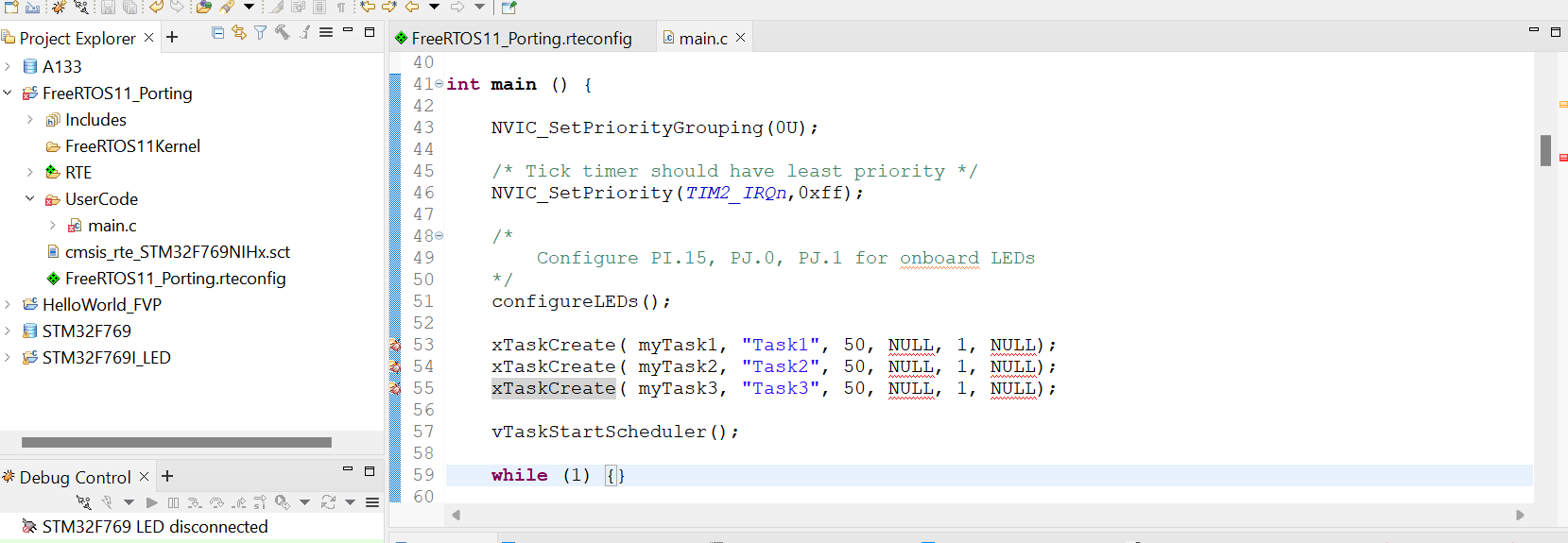 四、驗證FreeRTOS已移植到STM32F769開發(fā)板上