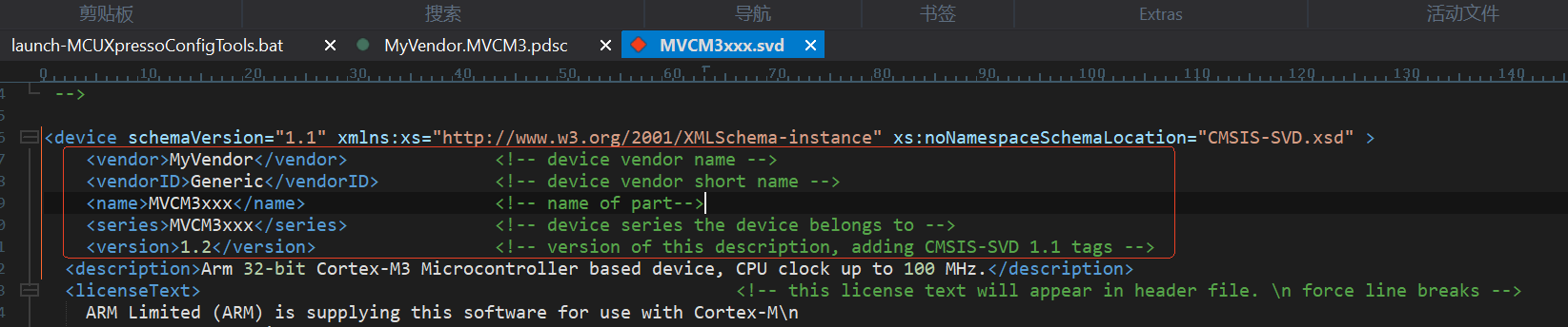 10. 打開“FilesSVD”目錄下的“MVCM3xxx.svd”文件,修改如圖3-9的內(nèi)容: