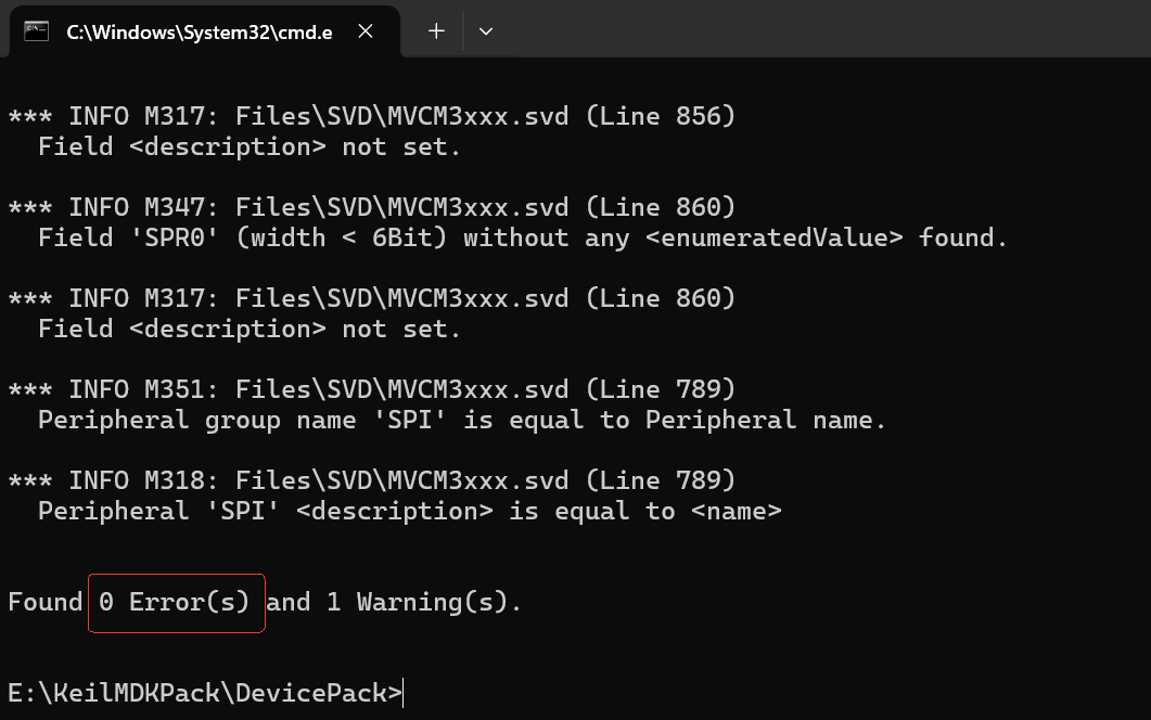 11. 在工作目錄下運行:SVDConv.exe FilesSVDMVCM3xxx.svd --generate=header –-fields=macro,沒有出錯,如圖3-10所示: