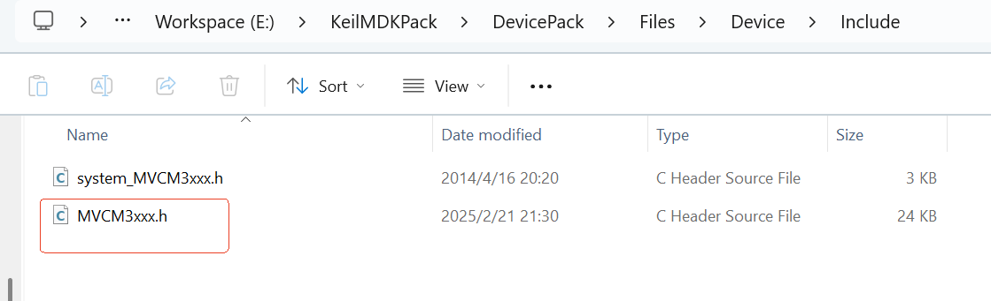 12. 把生成的 MVCM3xxx.h移到工作目錄的DeviceInclude目錄下,如圖3-11所示: