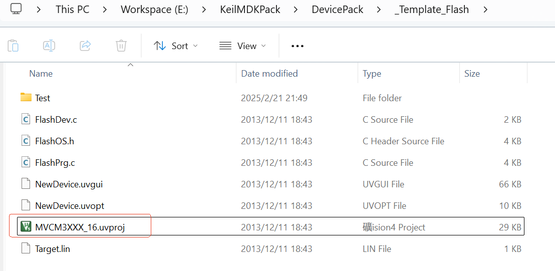 15. 把“ _Template_Flash”目錄下的“NewDevice.uvproj”修改為“MVCM3XXX_16.uvproj”,如圖3-14所示: