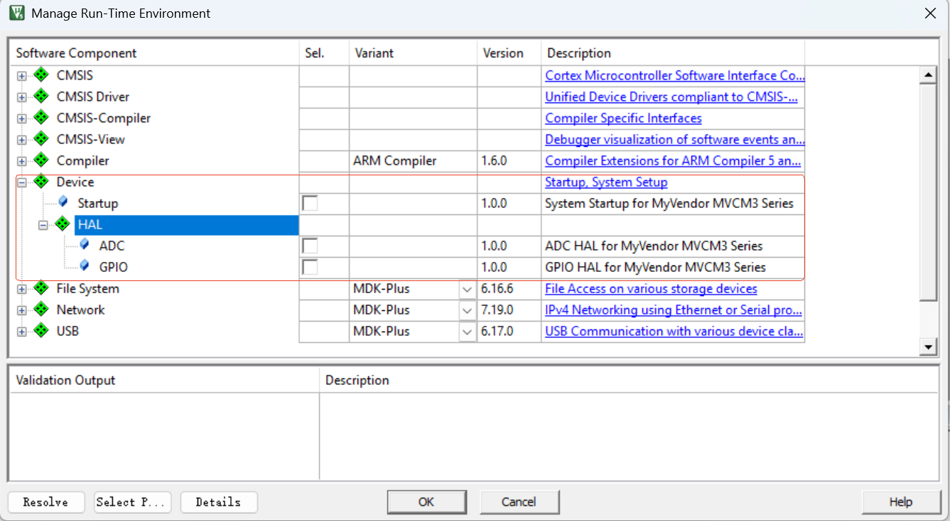 3. 打開“Manage Run-Time Environment”,驗證啟動代碼與HAL部分,如圖4-2所示:
