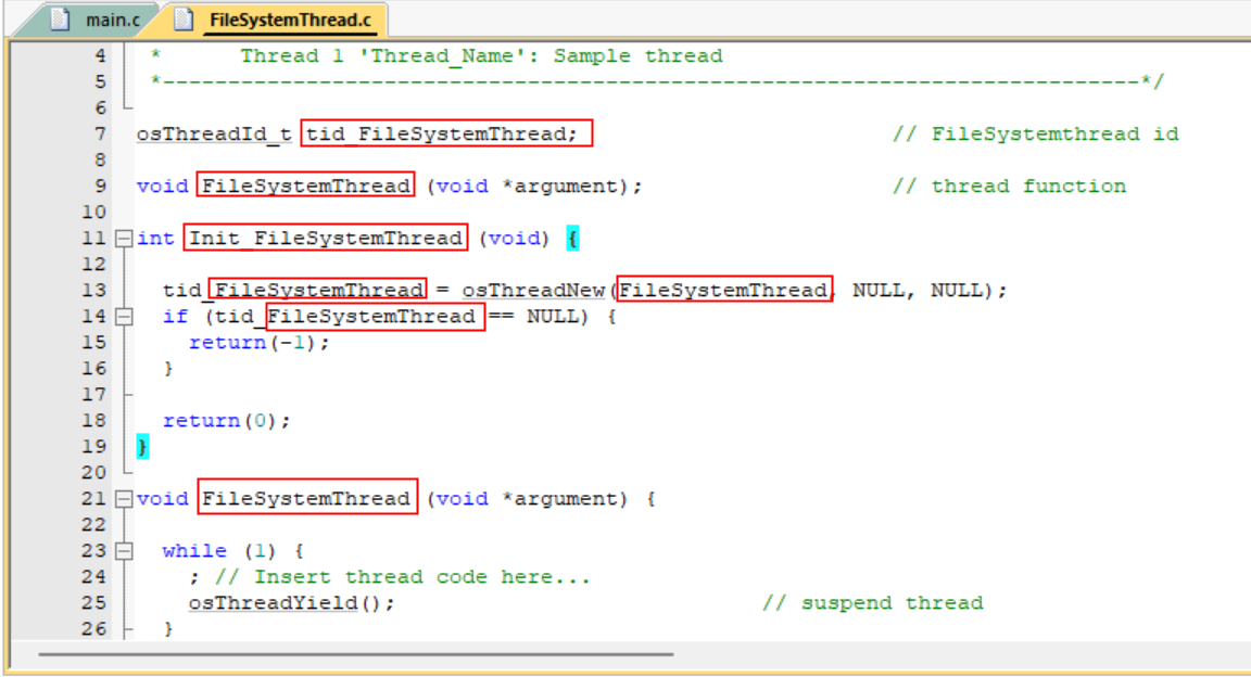 10. 修改一下“FileSystemThread.c”這個框架文件,如圖3-10所示: