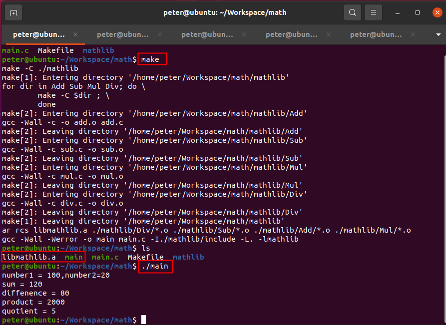 1. 如果需要把庫文件存放在“mathlib”目錄下,需要如何修改Makefile文件的內容。