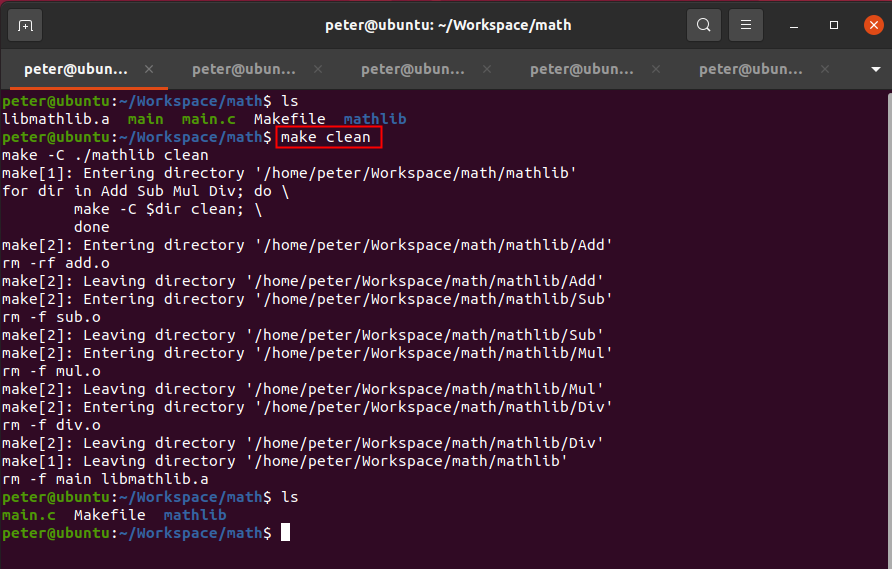2. 在“math”目錄下,運行"make clean",然后查看目錄下的文件,如圖4-2所示: