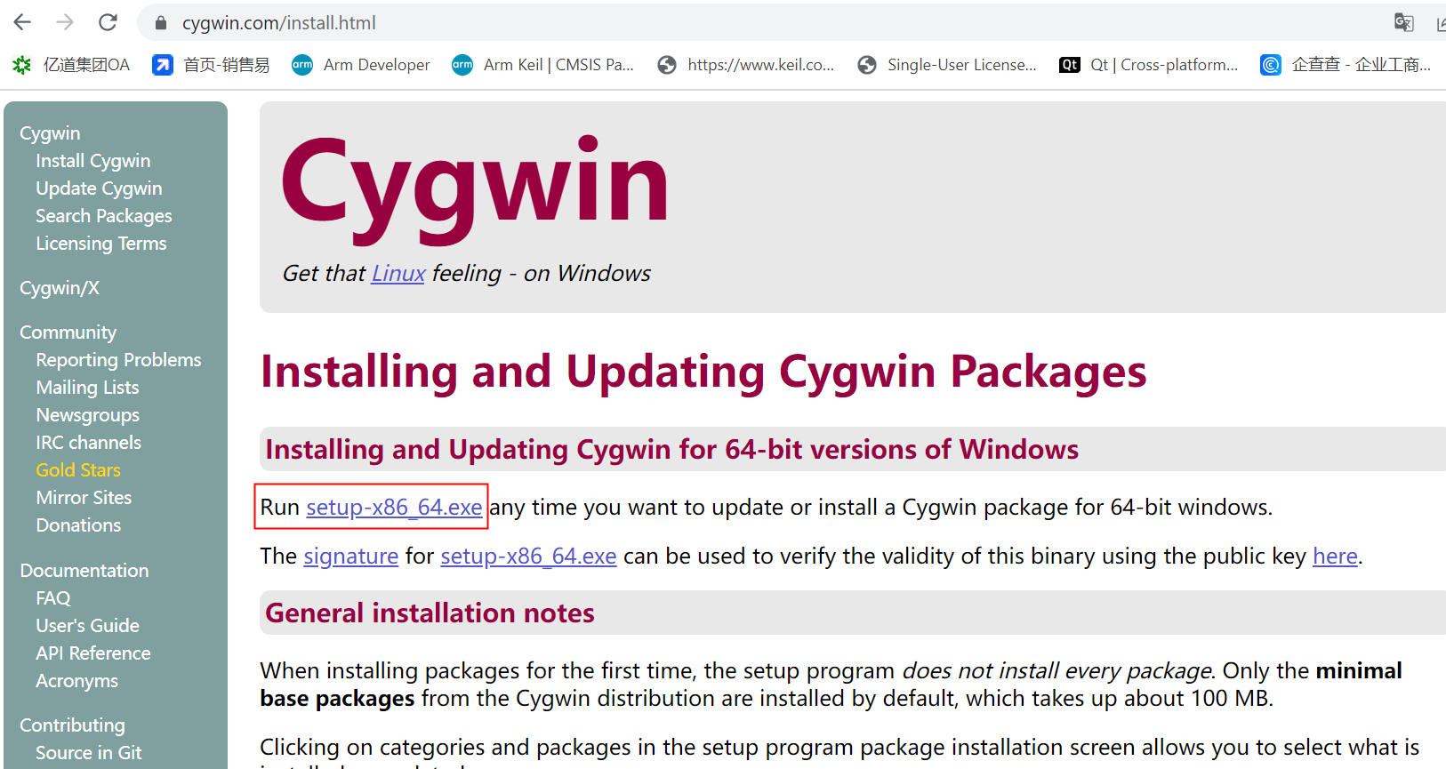 ? 下載Cygwin:訪問Cygwin官網,下載Cygwin安裝程序。