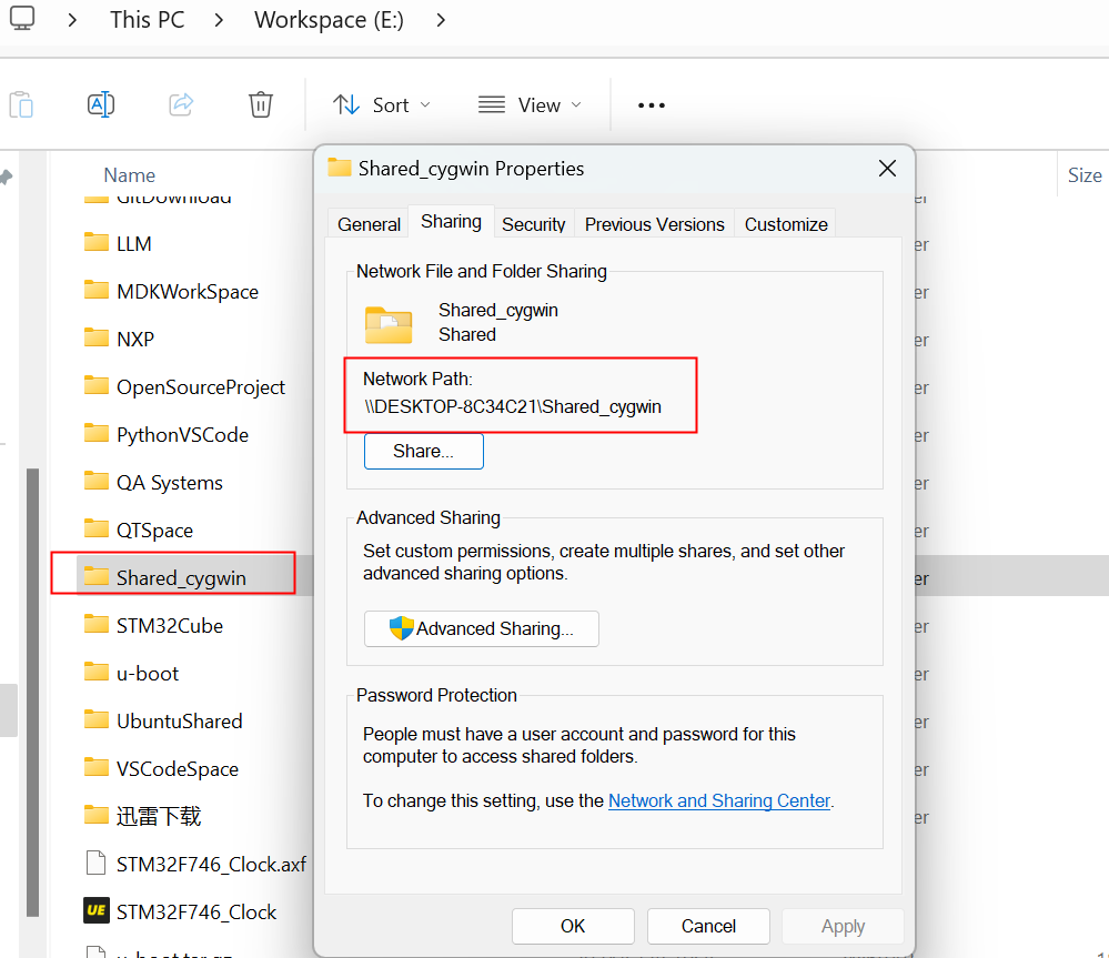 3. 在Windows 11中創建一個共享文件夾,比如"Shared_cygwin",如圖3-3所示: