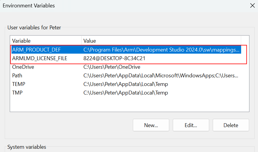 7. 在Windows系統下設置好ArmDS的License的環境變量,如圖3-7所示: