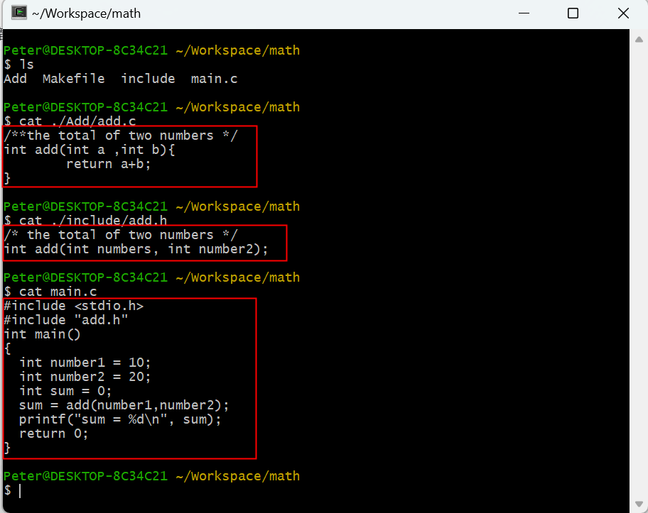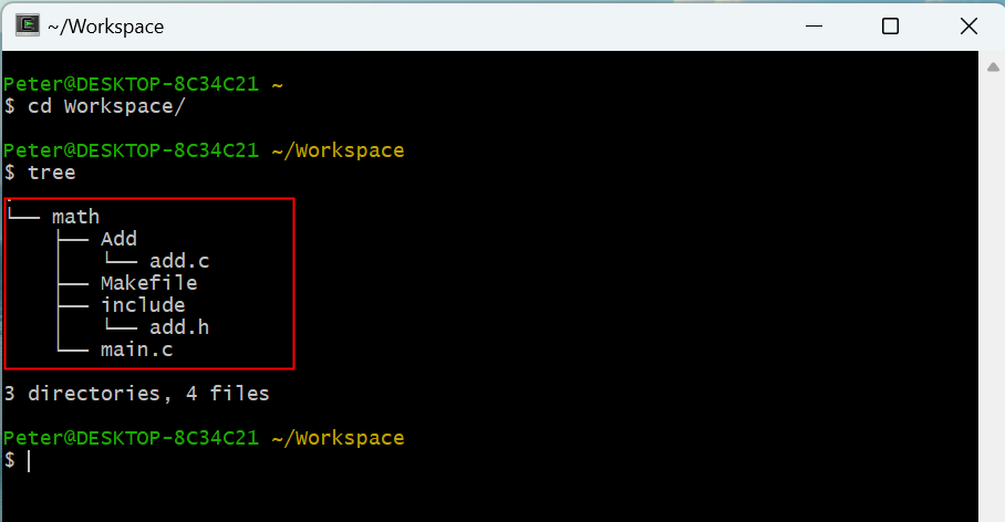 1. 在“Workspace”目錄下創建math目錄,再創建兩個子目錄:Add與include,并創建對應的源代碼文件,如圖4-1所示: