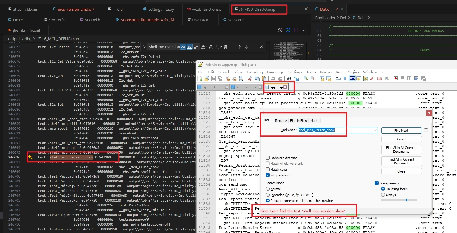 4)、運行成功后,我們在項目中看到新的Map文件,并進入查看,可以看到有shell_mcu_version_show的調用信息。