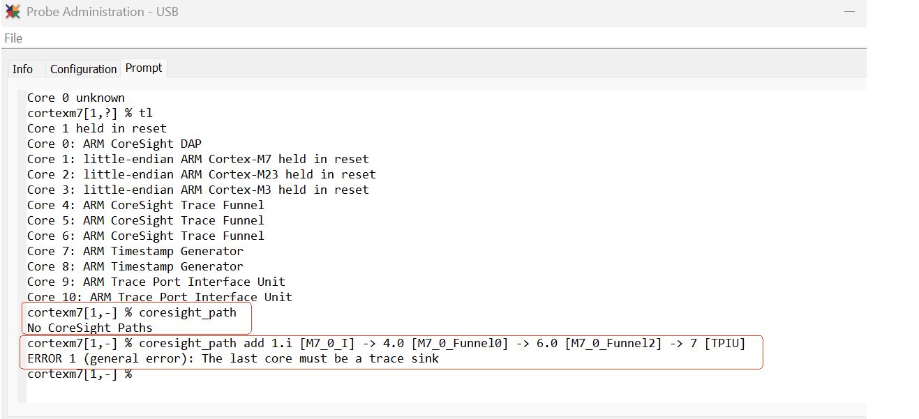 當用“coresight_path add"向開發板添加Trace數據流時,出現如圖2-1的錯誤: