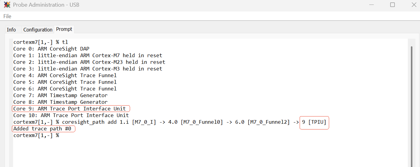 2)、輸入“tl”可以查看到第一個TPIU的Core號是9,把7修改為9就可以了。如圖4-2所示: