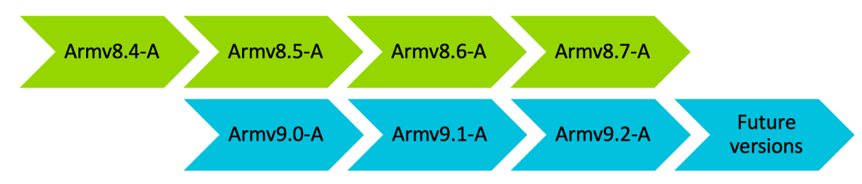 Armv9.0-A與Armv8.5-A一致,繼承了Armv8.5-B的所有功能并添加了新功能。Armv9-A首次發(fā)布后,Armv8-A和Armv9-A.將一起更新。Arm將發(fā)布Armv9-A的新功能,并將繼續(xù)更新和維護(hù)Armv8-A。