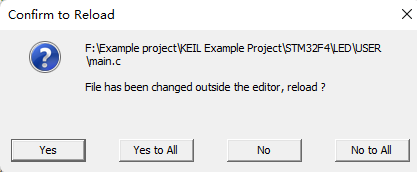 目前越來越多第三方編輯器在代碼編寫、代碼自動補(bǔ)全、代碼模板上的功能越來越強(qiáng)大,很多工程師都開始愿意在第三方編輯器上面去編寫代碼,從而加快代碼的編寫速度和代碼規(guī)范。然后,回到MDK中去構(gòu)建代碼。但是,回到MDK中會提示文件被修改,是否進(jìn)行加載(如圖2-1)。