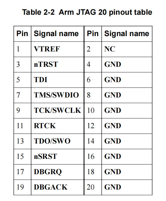 1)、因為Ulink pro本身連接線上的Cortex-M ETM Interface 20-pin Connector接口很小,無法通過直接跳線去完成連接,所以需要先接上Ulink pro的JTAG轉接板,轉接板的接口定義如圖4-1。