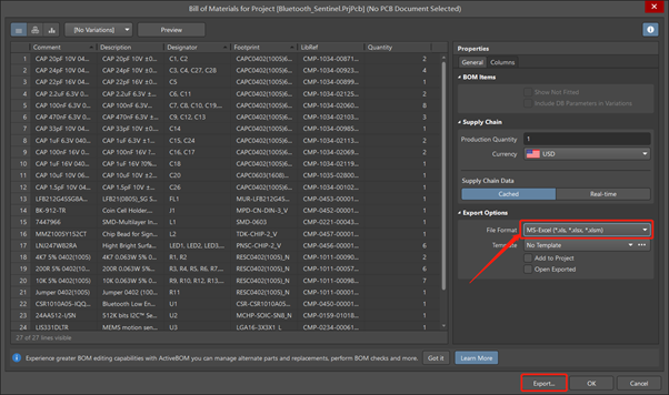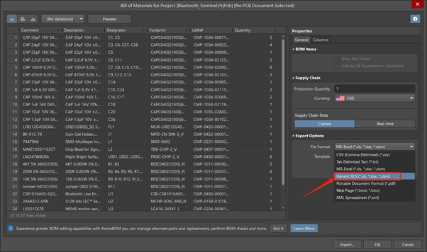 在導出BOM時,出現Error:在您的計算機上找不到Microsoft Excel。