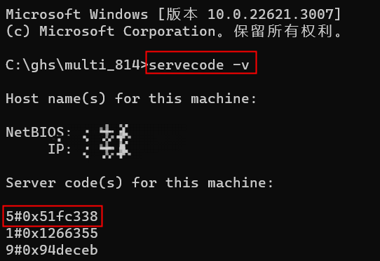 3)、在該命令行內輸入servecode -v,首行即為Green Hills軟件所識別到的Servecode。