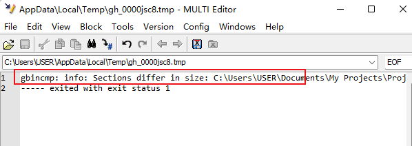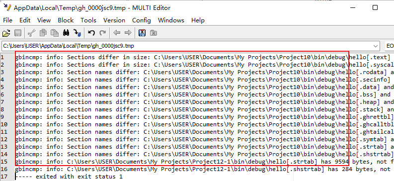 1)、在GHS中,gbincmp程序可以實現這個功能,gbincmp程序比較兩個ELF二進制文件。程序的命令格式為:gbincmp [options] file1 file2