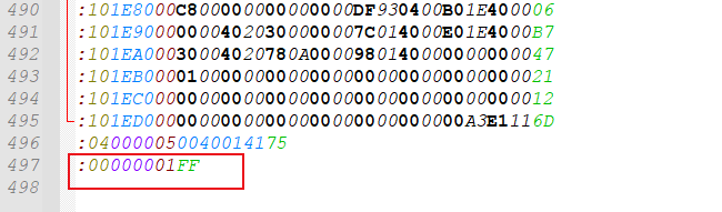 (5)、Hex文件的最后一行數據:“:00000001FF”