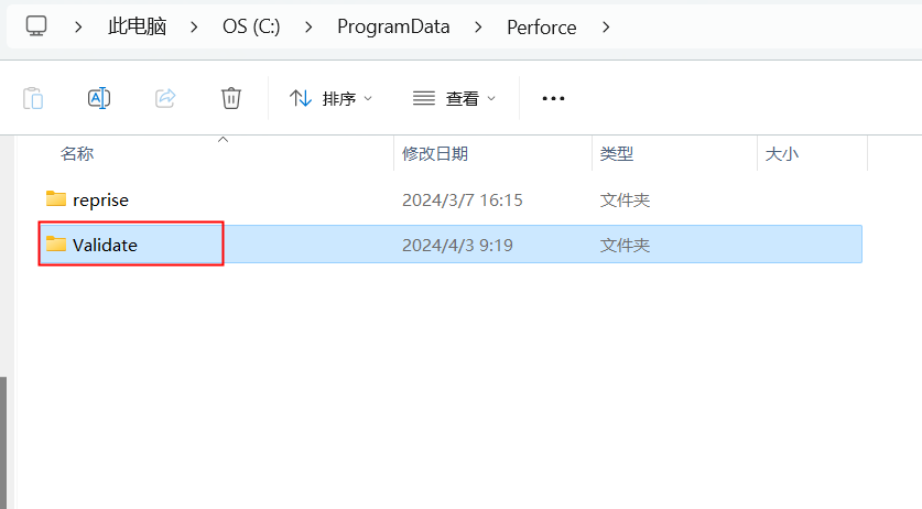 4)、進入<Perforce>文件夾,找到<Validate>文件夾,將其全部刪除,再次進行Validate 軟件安裝。