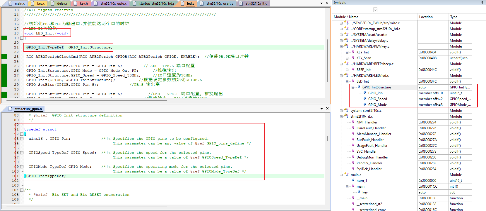 了解在MDK調(diào)試過程中Symbols窗口中包含的信息。