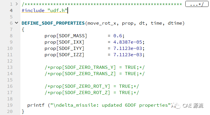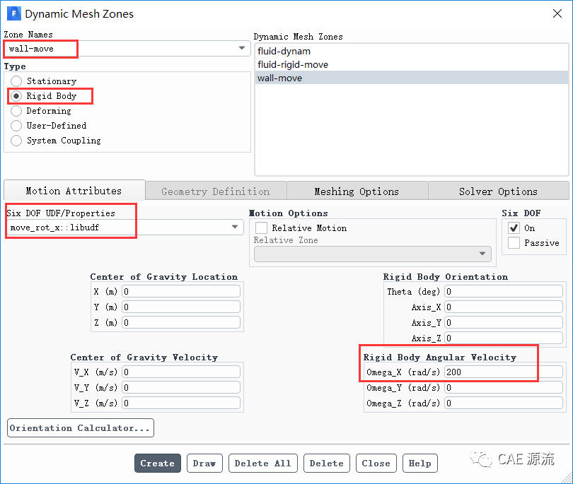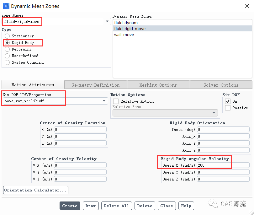 fluid-rigid-move設(shè)置為剛體,運(yùn)動方式采用UDF定義,旋轉(zhuǎn)速度如下圖: